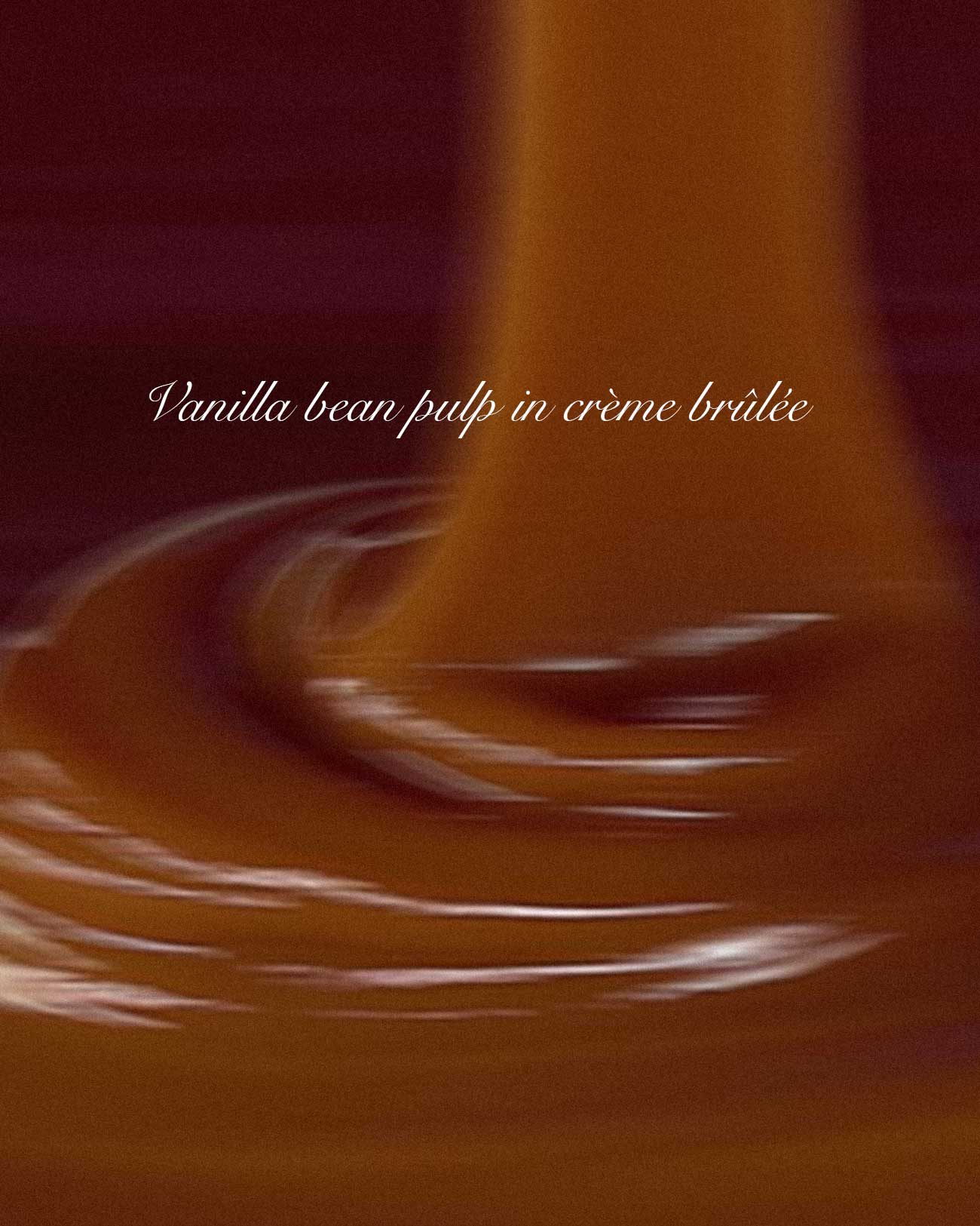 Category: Minimal Gourmand, vanilla bean pulp in crème brulée.