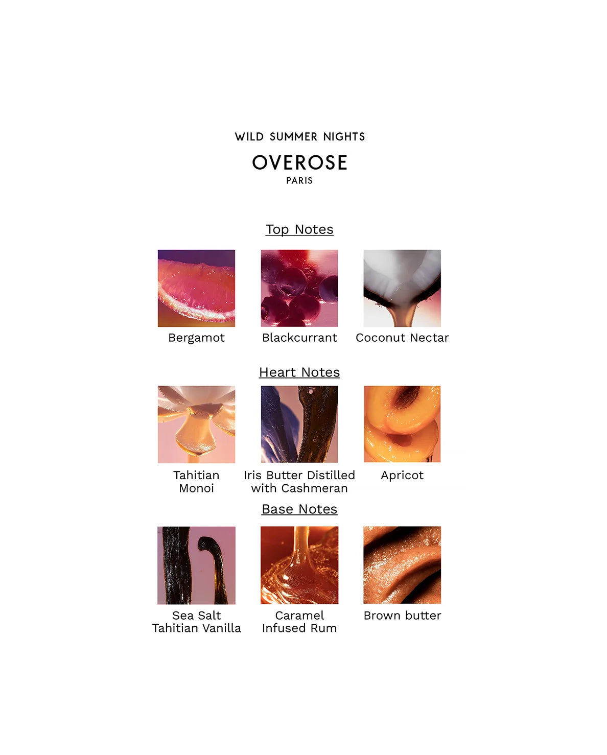 Wild Summer Nights is built around a unique co-distillation of cashmeran and iris butter, two of perfumery’s most sensual materials, brought together in an unexpected fusion. The result is warm, caramelized, and softly gourmand, with the iris melting into a praline-like trail that feels both decadent and airy.