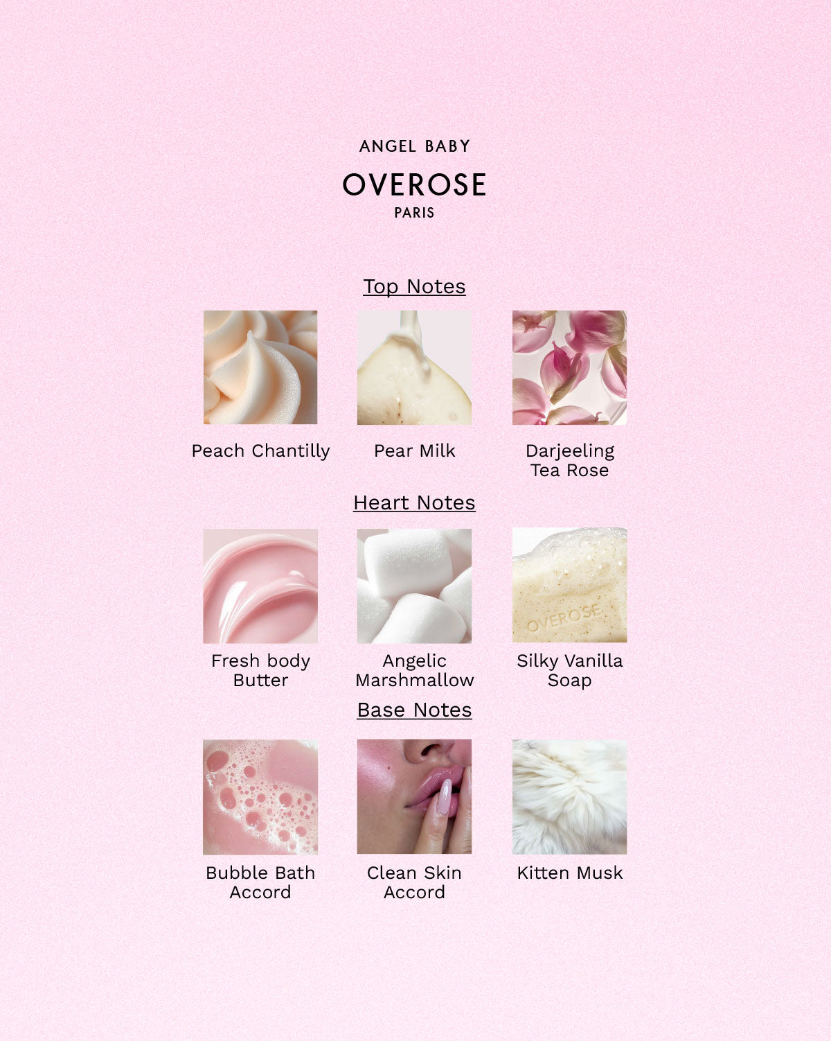 Angel Baby is a cinematographic fragrance that captures the delicate contrast between clean intimacy and soft-focus gourmand.