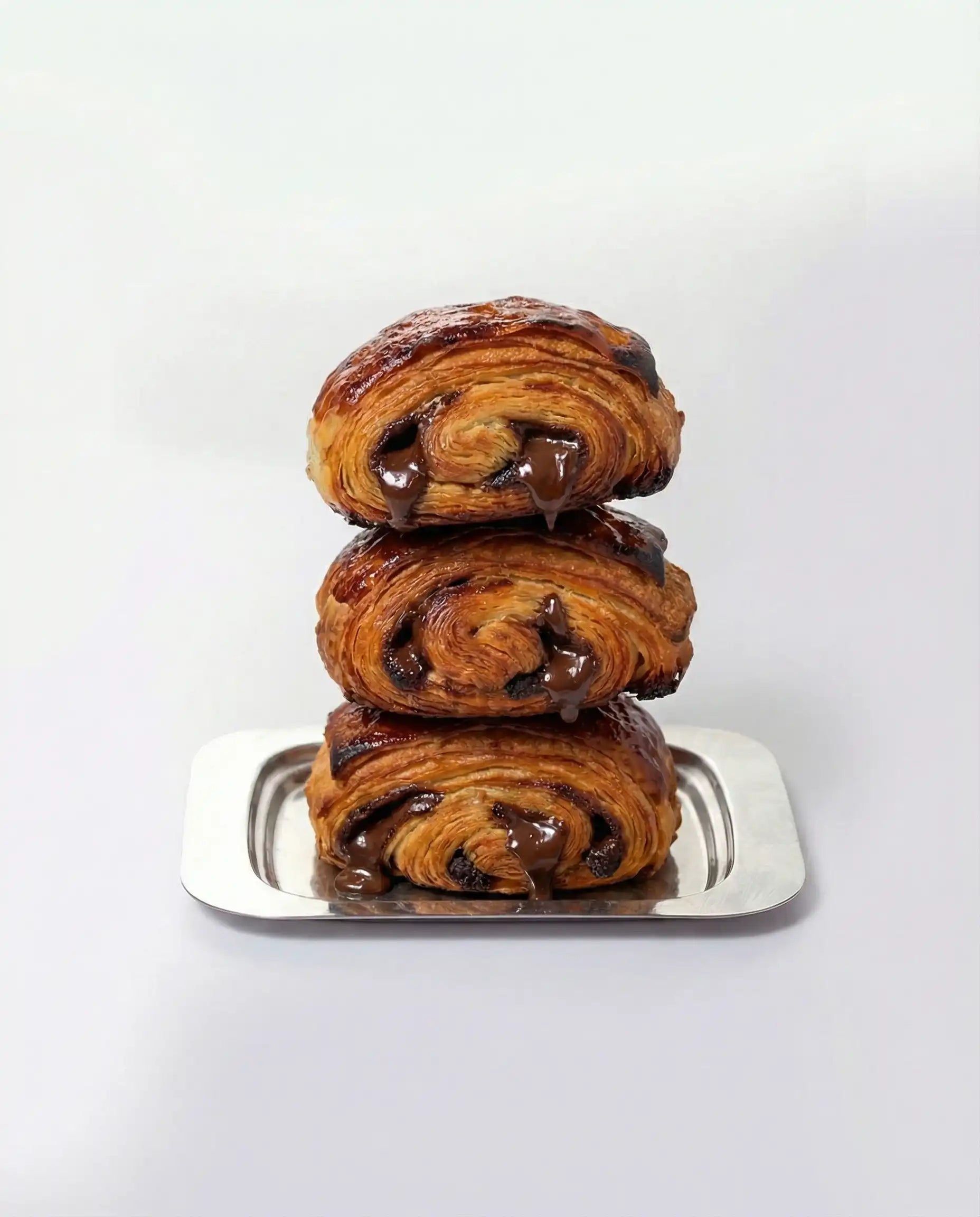 Golden layers of flaky pastry unfold in the air, warm with the scent of buttery dough just risen and baked. Melted ribbons of hazelnut chocolate, roasted cacao, and vanilla extract linger beneath, rich, nutty, and evocative of a true french patisserie.